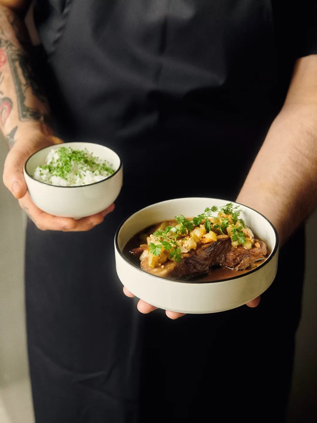 Základní stavební kámen nabídky zůstává nezměněn. KRO si vybudovalo jméno na kuřatech z farmy Druhaz, která před pečením na rotisserii procházejí procesem nakládání do marinády plné umami složek. Historicky bylo grilované kuře vnímáno spíše jako rychlé a levné pouliční občerstvení. Teprve v posledních letech se ho chopili kuchaři s fine diningovou průpravou, kteří pomocí precizního solení a kontrolovaného pečení povýšili tuto surovinu na plnohodnotný restaurační chod. KRO k masu tradičně přidává vlastní fermentované přílohy a omáčky, což je postup, který si podnik zachovává i na nové adrese.